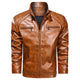 CARANFIER Fur Lined Patchwork Retro Leather Jacket