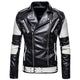 CARANFIER Leather Punk Aviator Lapel Motorcycle Jacket