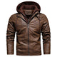 CARANFIER Leather Retro Hooded Fleece Locomotive Jacket