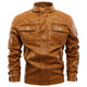 CARANFIER Leather Vintage Bomber Fleece Jacket