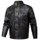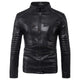CARANFIER Leather Oblique Zipper Fleece Lapel Locomotive Jacket