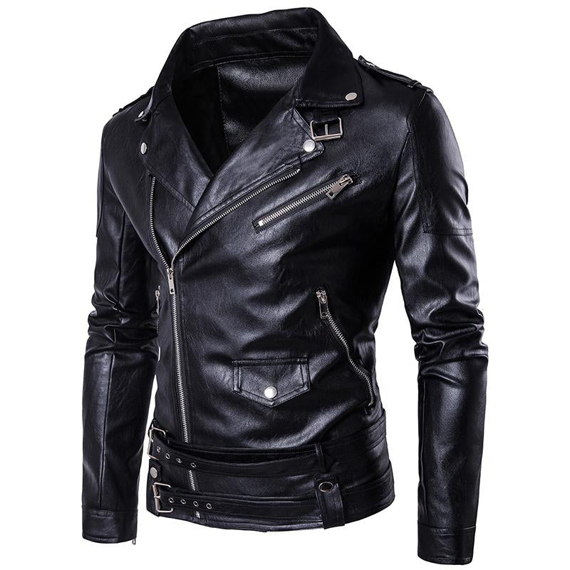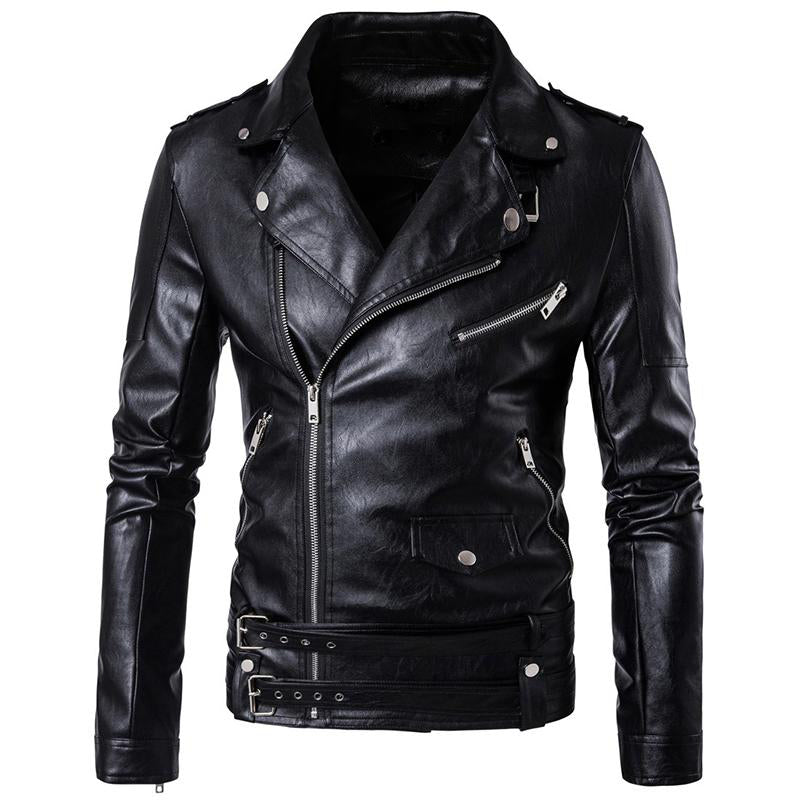The CARANFIER Locomotive Punk Leather Jacket is the quintessential leather jacket of all time.