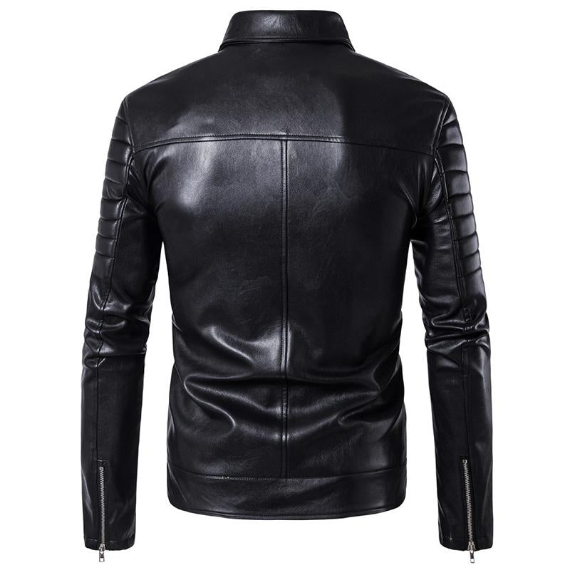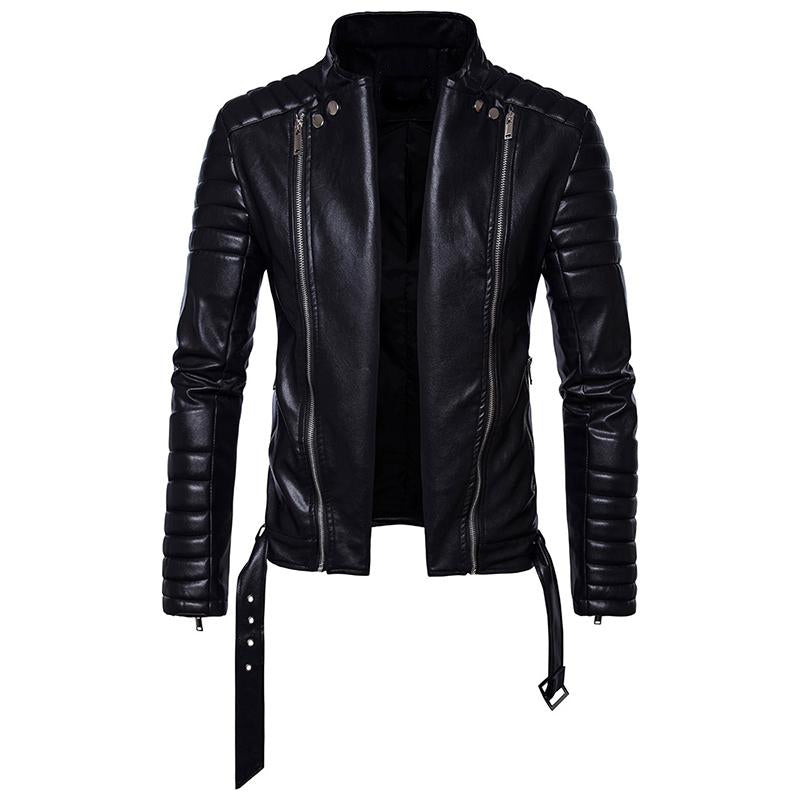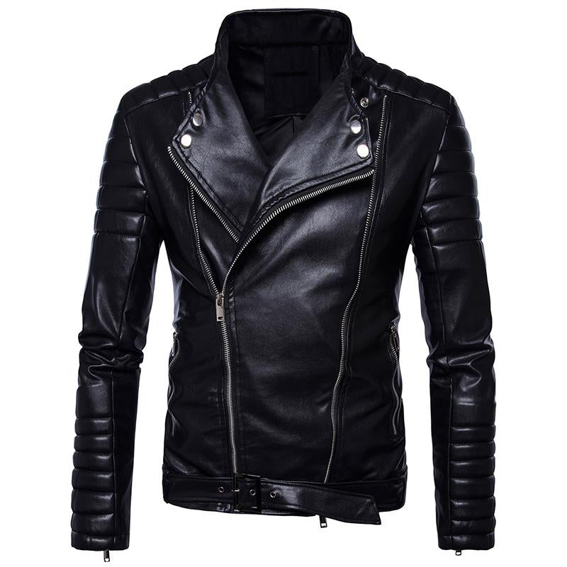 CARANFIER Leather Rock Roll Zipper Locomotive Jacket