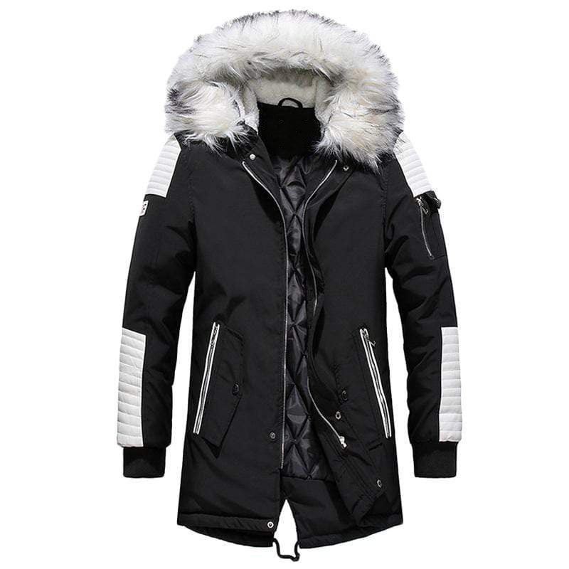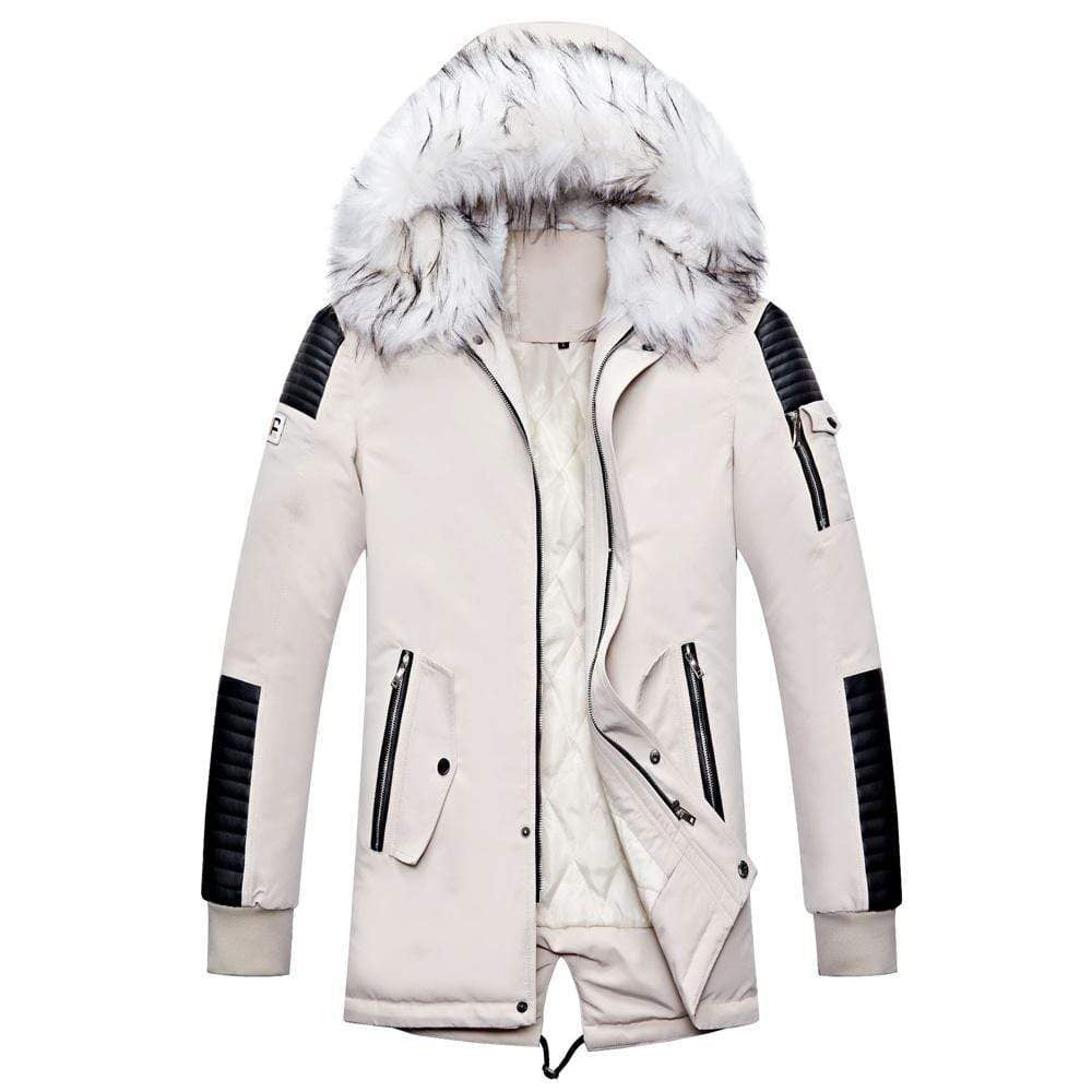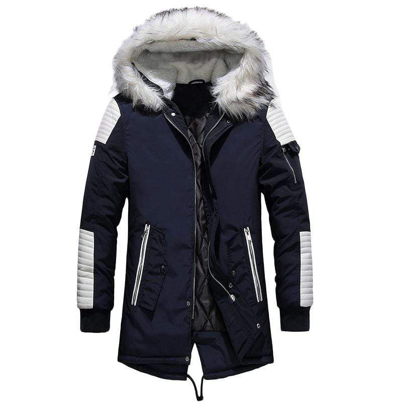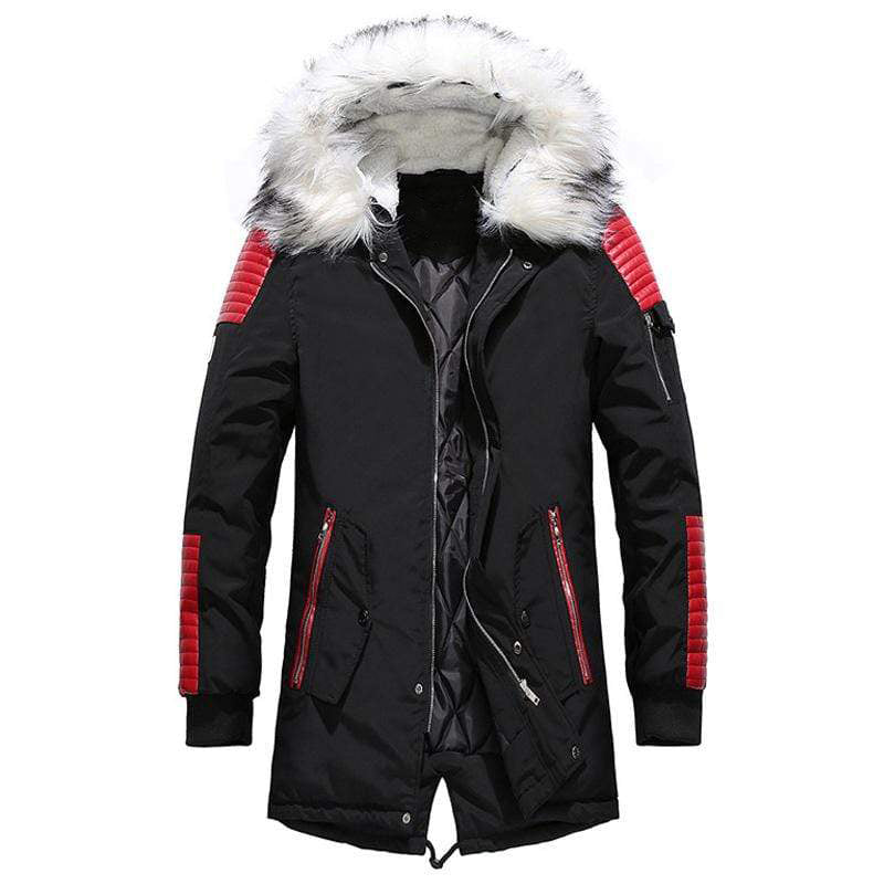 Features a hooded collar, adjustable drawstring hem, and functional pockets.